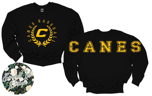 Canes Baseball Oversized Horizontal Design on Crewneck Sweatshirt