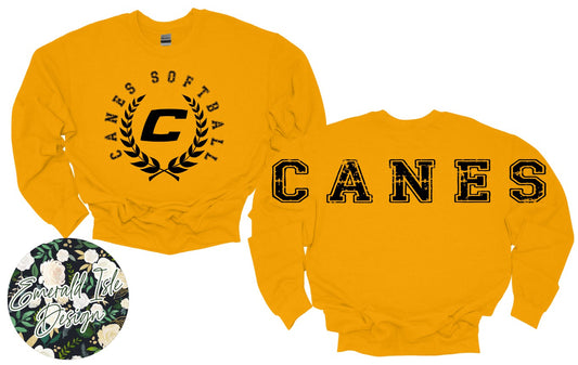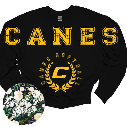 Canes SOFTBALL Oversized Horizontal Design on Crewneck Sweatshirt