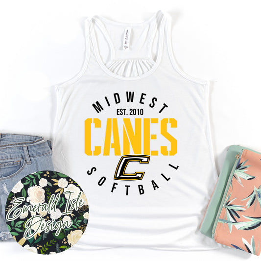Midwest Canes **Softball** Est. 2010 Design Ladies Racerback Tank