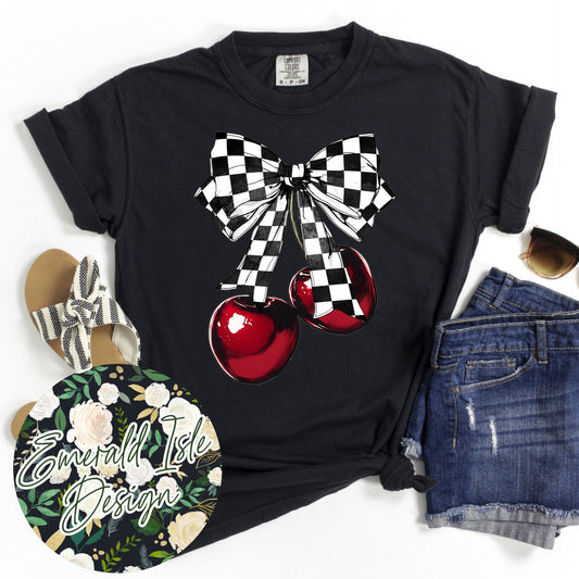 Checkered Bow Cherries Design