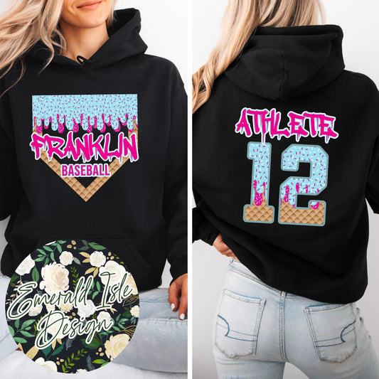 Franklin Youth Baseball Watercolor Square Design with Custom Oversized Back