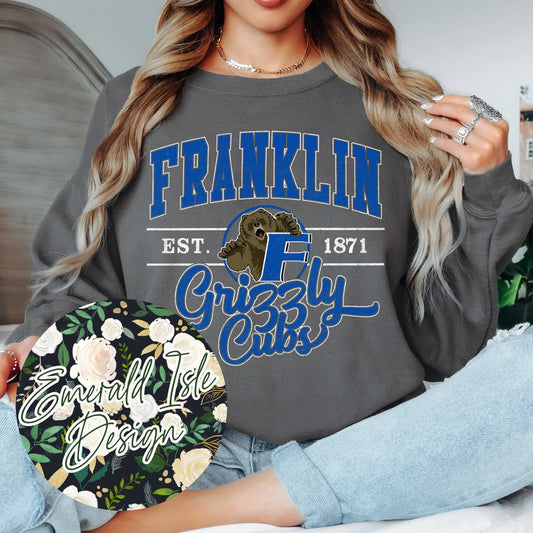 Franklin Grizzly Cubs Oversized Horizontal Design Style 2 on Crewneck Sweatshirt