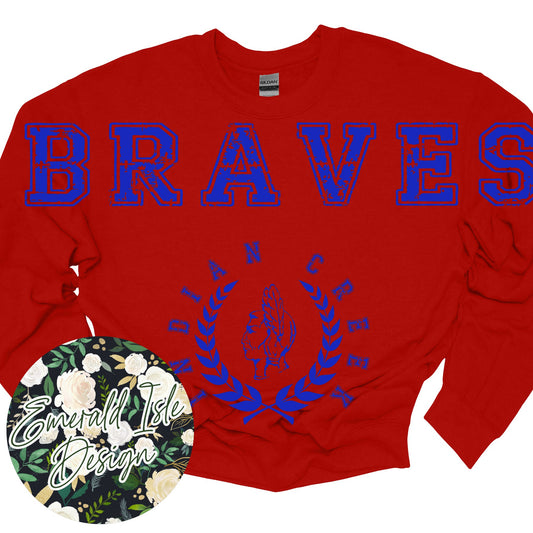 Indian Creek Braves Oversized Horizontal Design on Crewneck Sweatshirt