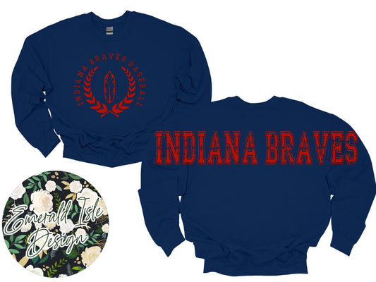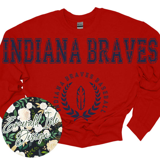 Indiana Braves Baseball Oversized Horizontal Design on Crewneck Sweatshirt