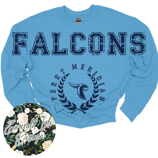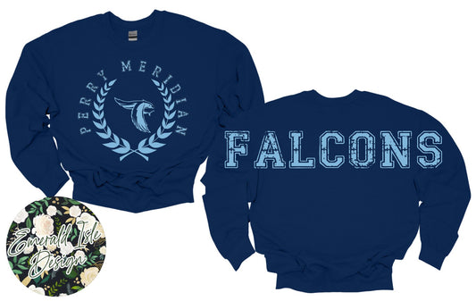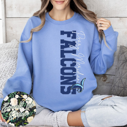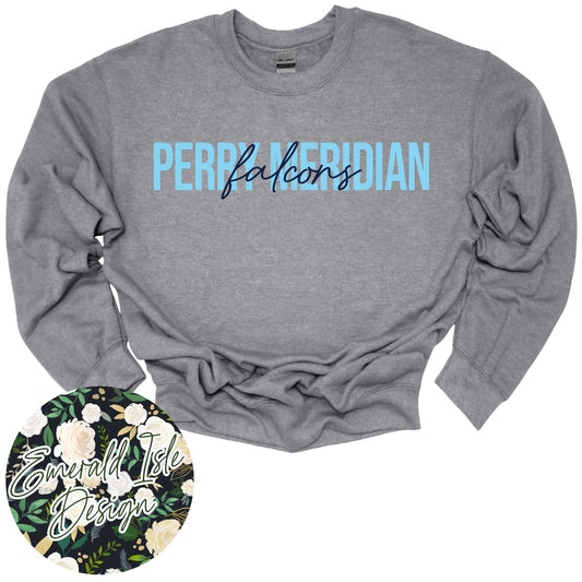 Perry Meridian Falcons Oversized Horizontal Design on Crewneck Sweatshirt