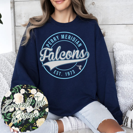 Perry Meridian Falcons Distressed Circle Design