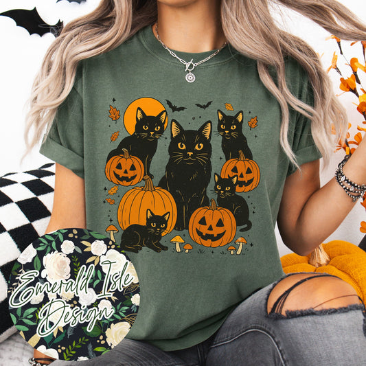 Vintage Black Cats and Pumpkins Design