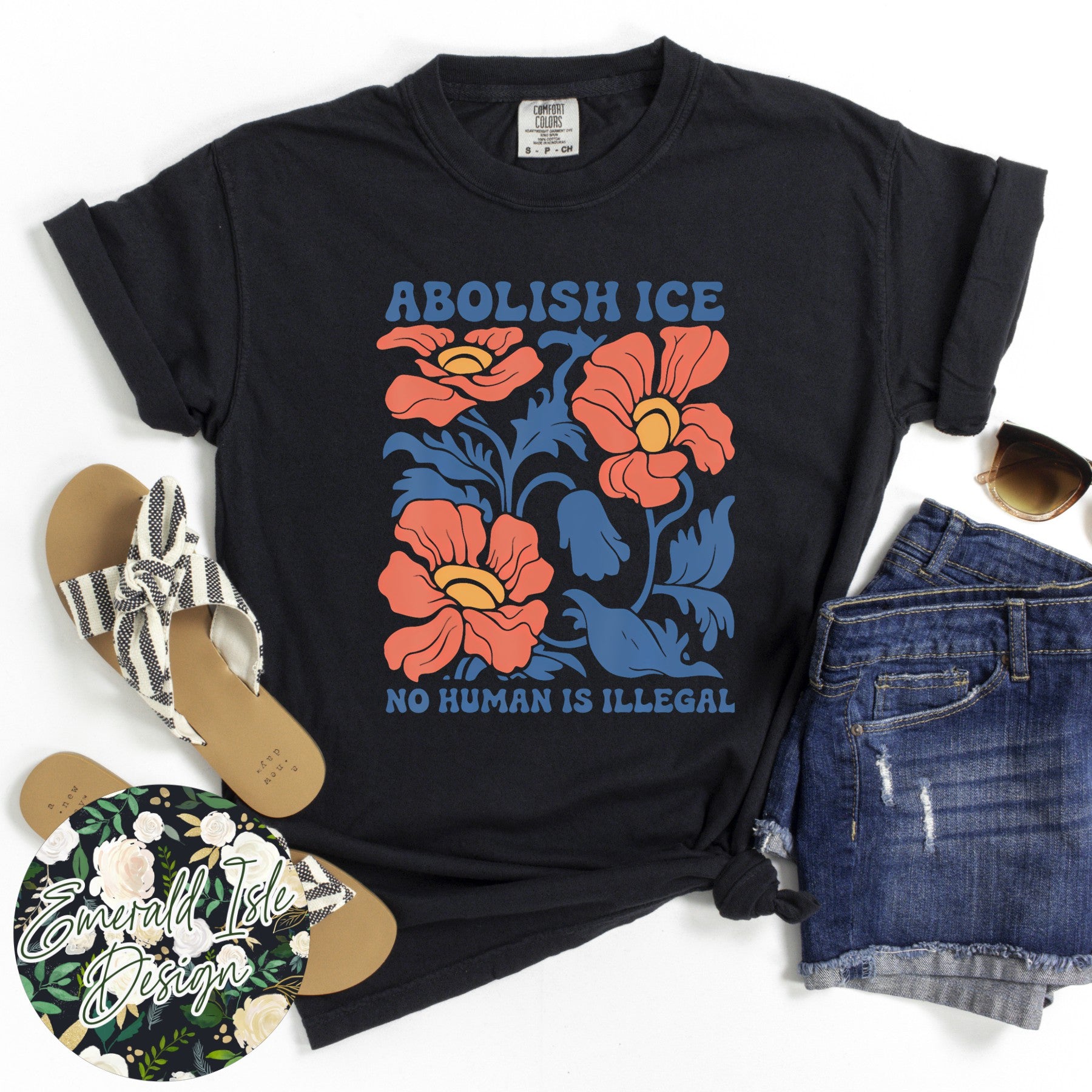 Abolish Ice No Human Is Illegal Floral Design
