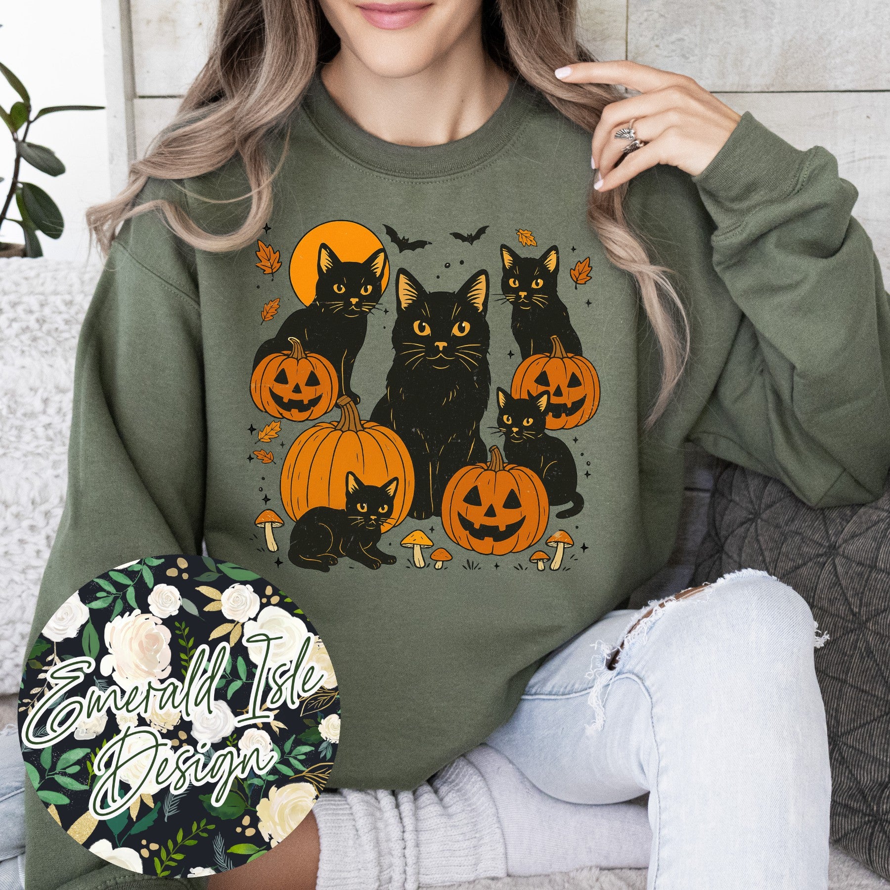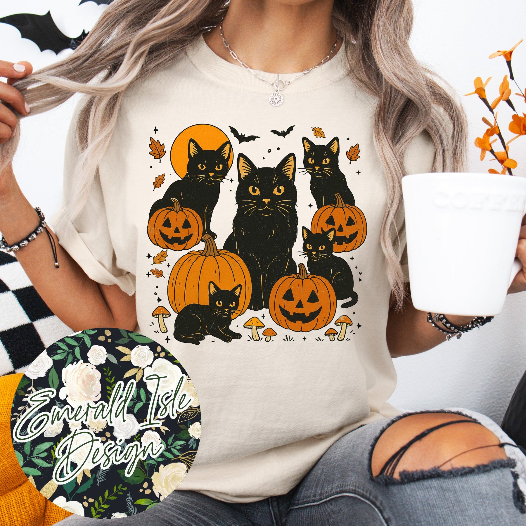 Bring a touch of whimsical charm to any outfit with this playful Vintage Black Cats and Pumpkins design. Perfect for everyone, its cute and quirky style captures the fun spirit of the season.